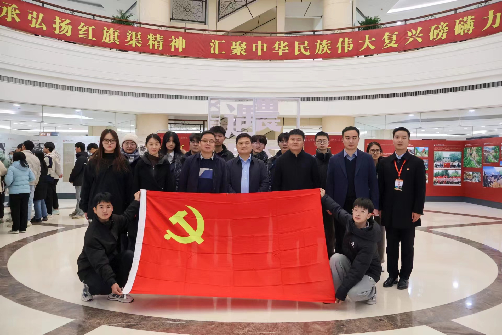 农学专业学生第一党支部与机关党委办公室党支部联合开展党日活动,共同参观“红旗渠精神进校园巡展”。