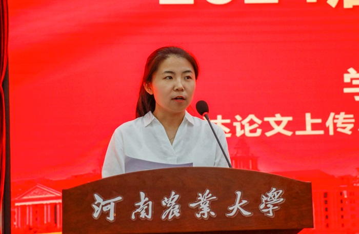 教学干事范晨雨传达了毕业论文上传,学位授予以及毕业条件等教务教学的相关要求。院团委书记朱瑞萍就三方协议签订、档案存放、党团关系转接等方面强调注意事项。