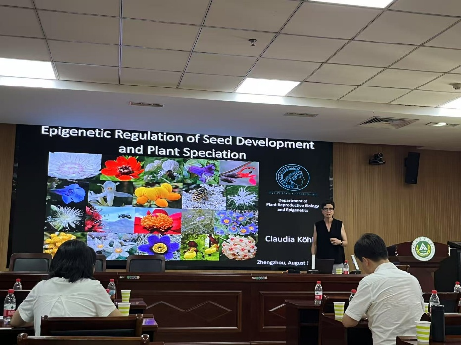 Claudia Köhler院士以“Epigenetic regulation of seed development and plant speciation”为题,系统介绍了其课题组在植物种子发育以及胚后生殖障碍领域取得一些系列重要研究成果,重点阐述表观遗传因子,组蛋白、DNA甲基化修饰、siRNA及印记基因对种子形成和三倍体障碍的影响。报告结束后Claudia Köhler院士与学院师生展开热烈讨论,并积极鼓励我校学生到德国马普分子植物生理研究所开展学习交流及攻读博士学位,提升国际合作水平。
