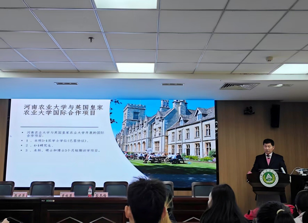 随后,英国皇家农业大学项目负责人David Sun详细介绍了英方合作培养项目的课程设置、科研平台、生活安排及学术支持等情况,并就同学们关心的问题进行了现场答疑,帮助同学们进一步了解在英学习与生活的具体安排。