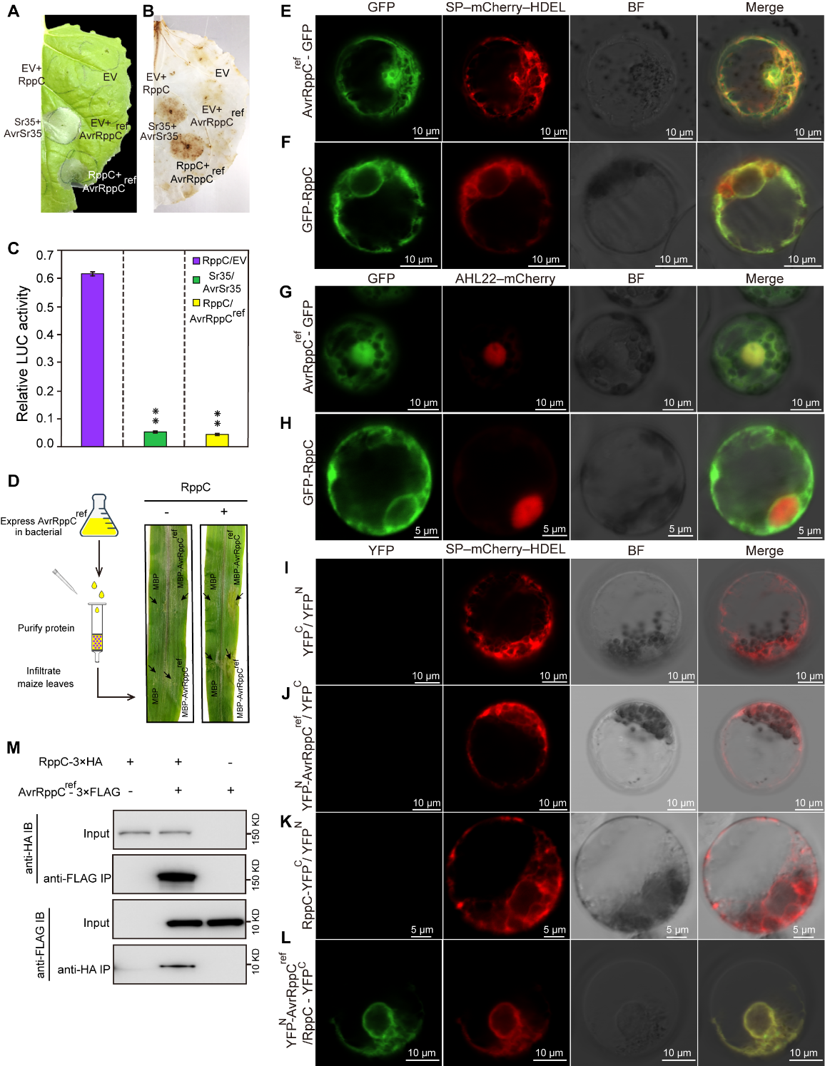 该研究采用图位克隆方法,从1份来自CIMMYT的热带玉米材料CML496中分离到了一个NLR类的抗玉米南方锈病的新基因RppC。在此基础上,课题组利用转录组分析和玉米原生质体HR(超敏反应)筛选体系等多种研究方法,在南方锈病病原菌基因组中鉴定到被RppC识别的效应蛋白AvrRppC,并证明了两者之间存在互作。通过对南方锈病病原菌生理小种进行人工接种分析发现,抗病新基因RppC高抗玉米南方锈病的病原菌优势小种,并发现新的病原菌小种通过AvrRppC突变的方式来逃避RppC的识别。本研究报道的RppC/AvrRppC的互作方式符合经典的“基因对基因”学说的互作模型,为深入认识抗病基因与病原菌互作的分子机理奠定了理论基础,并为玉米抗南方锈病分子育种提供了科技支撑,应用前景十分广阔。