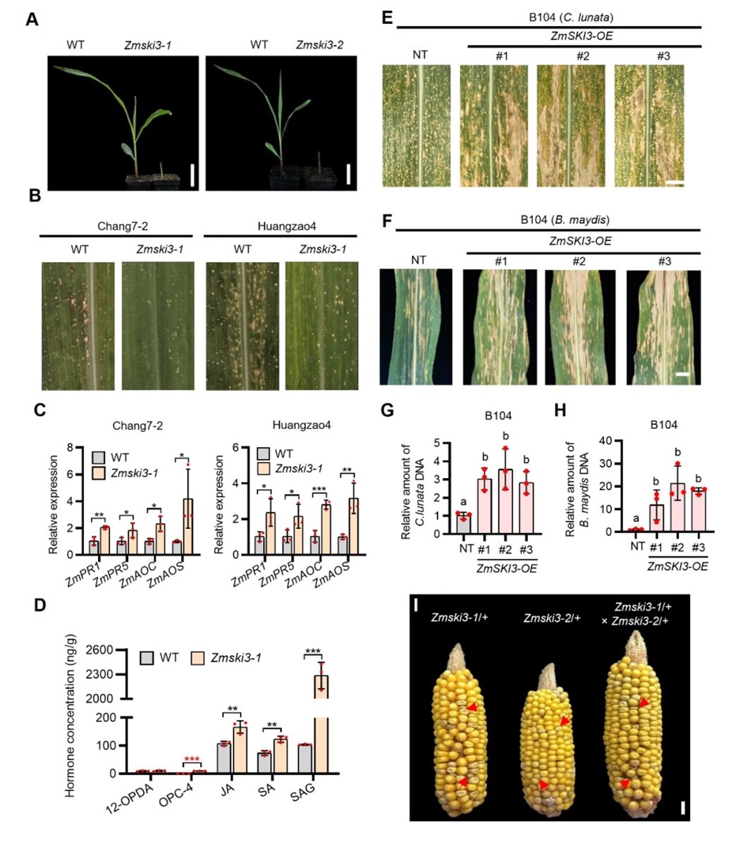 ZmSKI3正调控玉米的生长而负调控抗病性,是协同调控玉米生长和抗病性的重要因子。