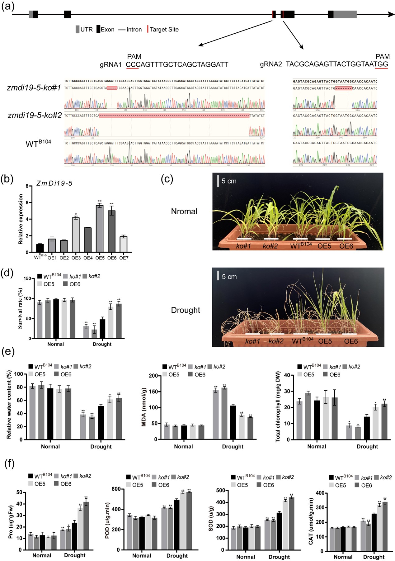 ZmDi19-5对玉米干旱耐受性的正向调控作用。