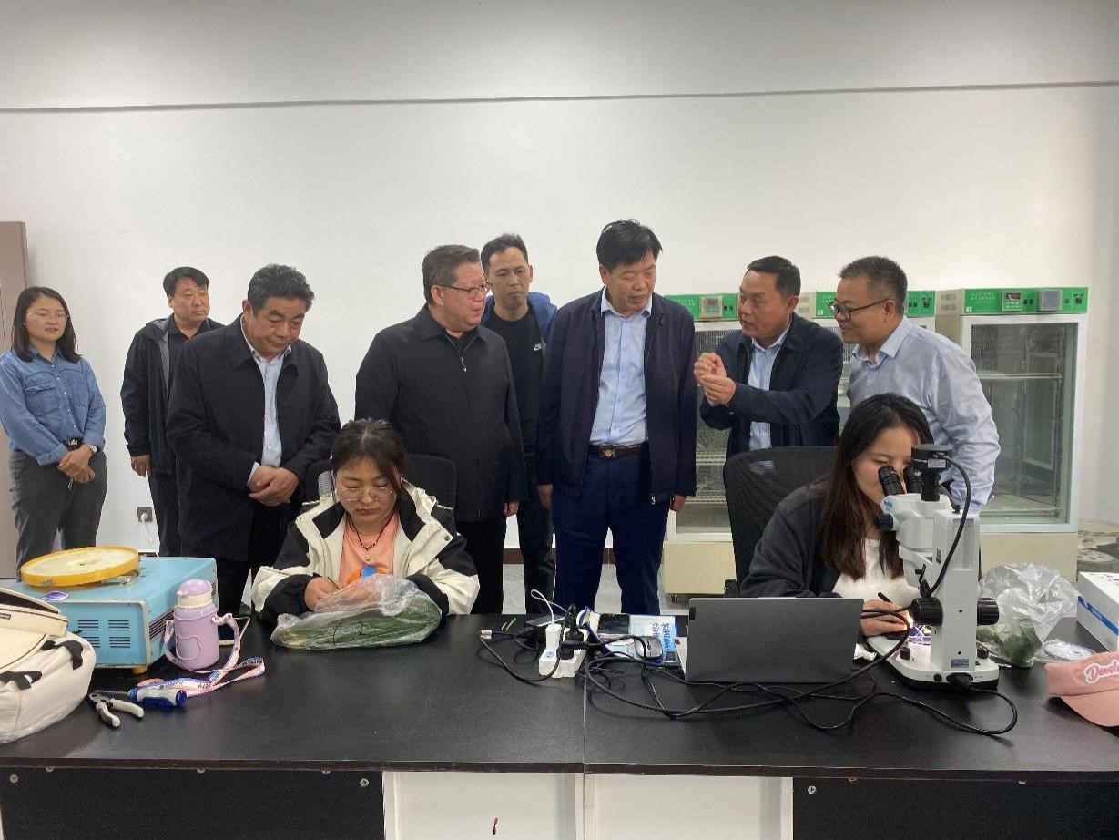 -商丘市国营民权农场豫东现代农业综合试验站新品种新技术示范基地。针对正在开展的小麦新品种新技术示范推广项目,贾磊详细询问了不同品种的品种特性、种植方式、示范面积及其配套技术;在小麦-牛至中药材间作技术示范田,贾磊详细询问了粮药间作的行距配置、绿色防控技术原理、关键栽培技术要领;并指出要把准现代农业发展新质生产力的着力点,因地制宜筛选适宜当地种植的高产小麦品种,加大关键技术突破、优化要素配置,集成示范高产高效绿色防控关键技术,确保国家粮食安全。