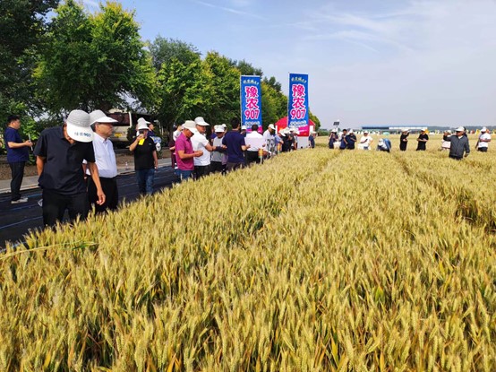 小麦测产专家副组长杨光宇研究员宣布豫农907千亩方测产结果平均亩产792.5公斤,赵虹研究员、赵志宏研究员、石东风研究员、郭永涛研究员、李会群研究员分别对豫农907进行了点评。殷贵鸿研究员详细介绍了小麦新品种豫农907选育过程、特征特性及配套的高产优质绿色生产关键技术。