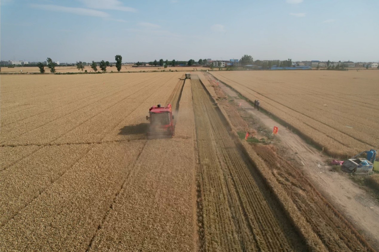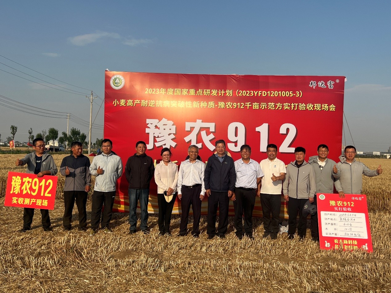 在新乡县合河乡建立的高产、耐逆、抗病突破性小麦新种质“豫农912”千亩高产示范方(1136亩)进行现场实打验收。