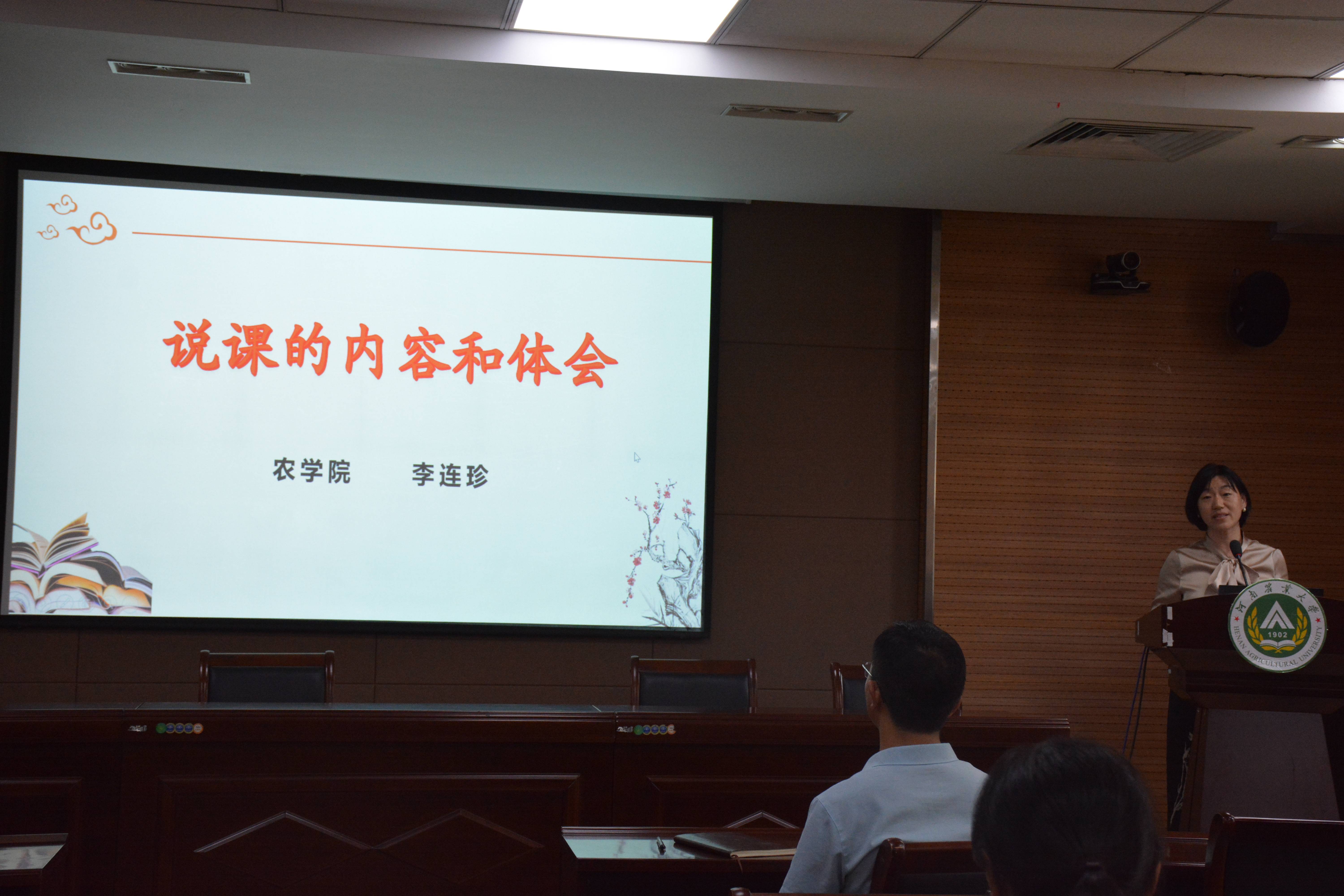 中药材系系主任、第三届河南省本科高校教师课堂教学创新大赛二等奖获得者李连珍老师,就评价依据中“说课”部分进行了现场示范。最后,参会老师针对各专业课程存在的不同情况进行了深入交流。