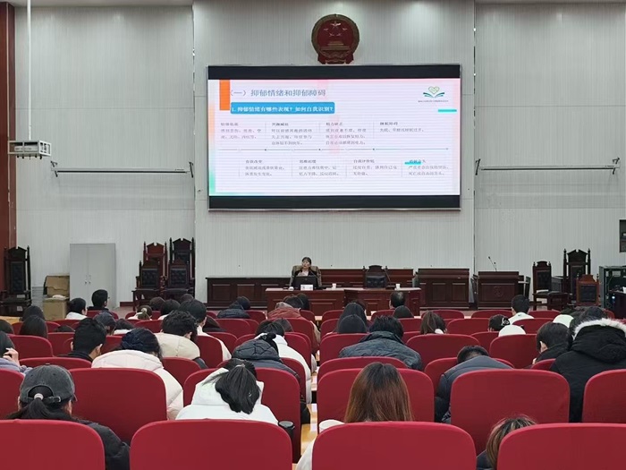 学生在龙子湖校区参加“做情绪的主人——大学生情绪自我关怀指南”专题讲座,活动特邀郑州大学第一附属医院精神科主任郝以辉主讲,动物医学院李奎教授出席,讲座由文法学院党委副书记朱瑞萍主持。