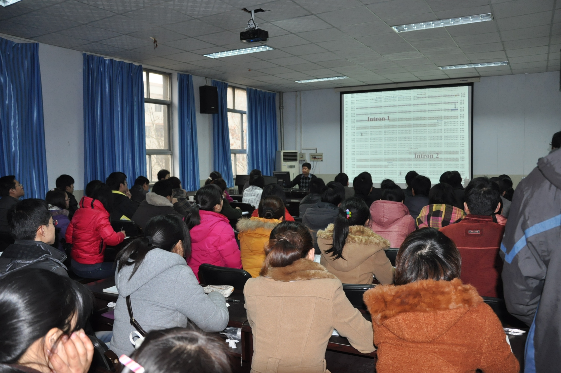 在报告会上,夏先春教授首先对小麦基因克隆及功能标记进行了分类介绍,然后深入浅出的讲解了小麦多酚氧化酶的功能及克隆、小麦细胞壁转化基因的功能及克隆、小麦D5亚基的分子标记等,其间又生动形象的讲解了各研究课题进展中的原理、方法及技术路线,最后又分享了自己多年来的研究经验和心得。