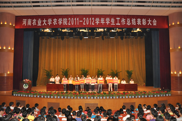 2011-2012学年学生工作总结表彰大会在校大礼堂隆重召开。校党委副书记、纪委书记杨德东,校党委组织部、统战部部长杨志清、宣传部部长郭战伟、研究生工作部部长李为、教务处处长何松林、学生副处长张红阳、校团委副书记马菲出席,院党委书记黄松、院长林同保、副书记贾磊、副院长杨青华、赵全志、杨百黎及全院在校本科生、研究生、毕业生参加了大会。会议由院党委副书记贾磊主持。