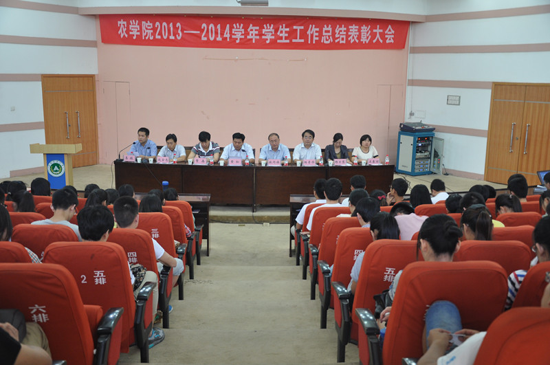 2013-2014学年学生工作总结表彰大会在校大礼堂三百人报告厅隆重召开。院党委书记黄松、院长林同保、院党委副书记贾磊、副院长杨青华、赵全志、杨百黎,院办公室主任王春丽及在校本科生、研究生代表参加了大会。会议由院团委书记易振主持。
