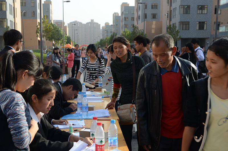 与新生、家长交流,对新同学的到来表示问候和欢迎,并解答有关问题。