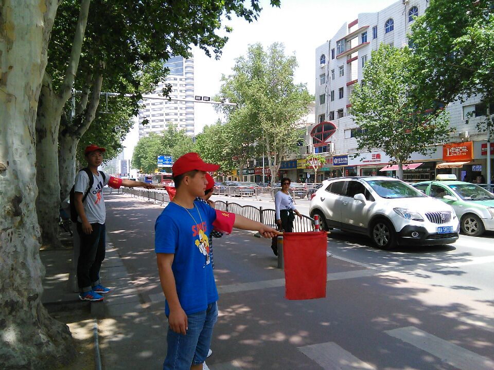 在正午烈日炎炎的阳光照射下,党支部成员戴着党员文明岗的袖章站在路口,利用口哨和小旗等工具进行交通协管,由于正值下班高峰期和修路等因素,车辆行进缓慢且无规则,严重影响了正常的交通秩序。但志愿者们热情、耐心、文明有礼地进行指挥,有序地引导过往行人及车辆,取得了过往行人学的一致好评。