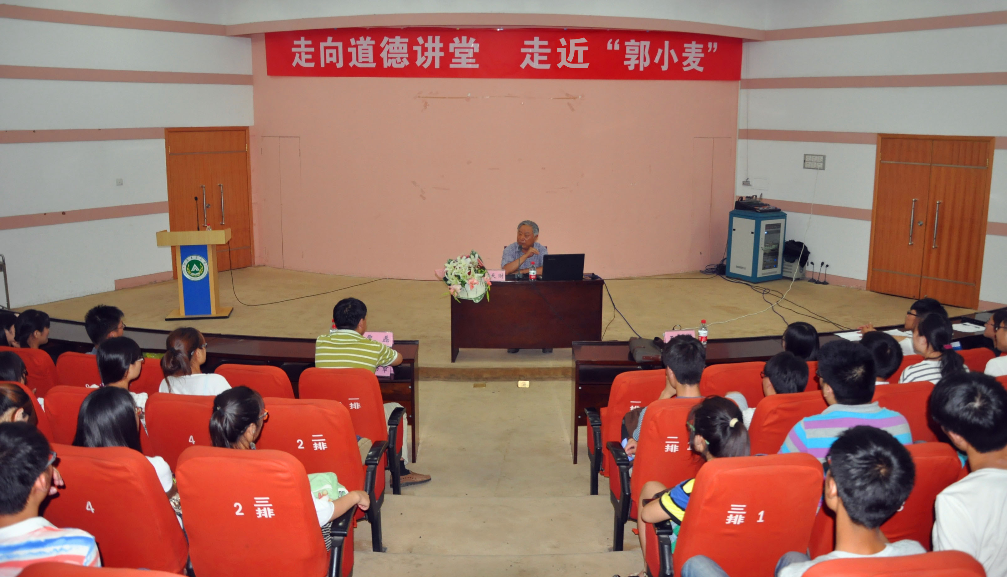 “走向道德讲堂 走近‘郭小麦’”郭天财教授报告会在校三百人报告厅举行。中原学者、全国先进工作者郭天财教授为成人电影