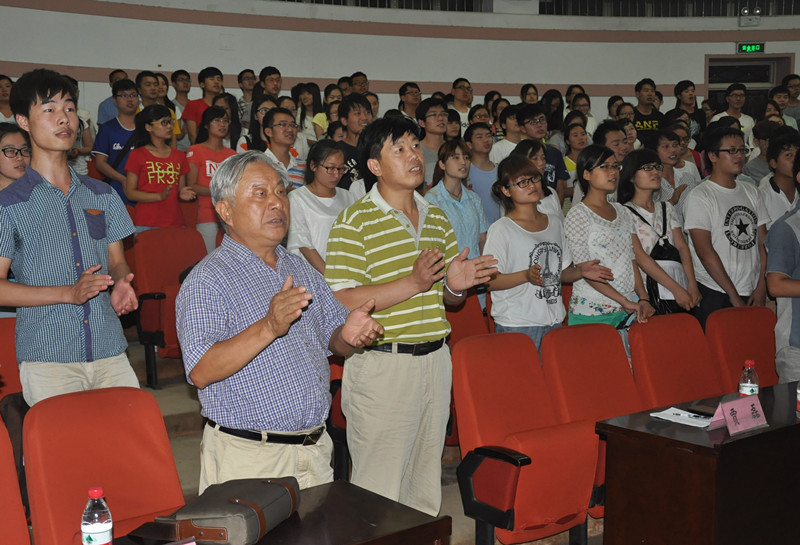 报告会结束后,郭天财和全体学生一起齐唱校歌绿色颂,并与大家合影留念。