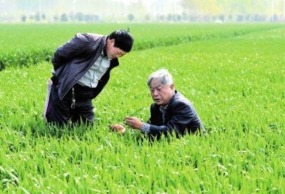 在北关镇王公庄村,郭天财对当地种植的周麦27品种提出了诊断意见。他告诉农户赵松会,这是小麦高产新品种,去年创出亩产821.7公斤的我国冬小麦最高纪录。在栽培管理上要注意做到良种良法配套,才能将它的丰产潜力挖掘出来。同时,还应注意做好测土配方施肥和节水灌溉,实现高产高效。