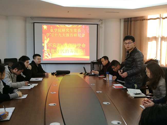 2017级作物栽培学与耕作学硕士研究生党支部,遗传育种硕士研究生党支部和专硕一年级硕士研究生党支部的全体成员。研讨会中,各党支部书记首先发表十九大学习心得,随后支部成员也结合自己专业学科,发表了各自见解。最后结合专业性质,全体参会人员学习了《服务乡村振兴,放飞青春梦想—全国高等农业院校大学生服务乡村振兴战略倡议书》。会后,大家观看了电影《建党伟业》。