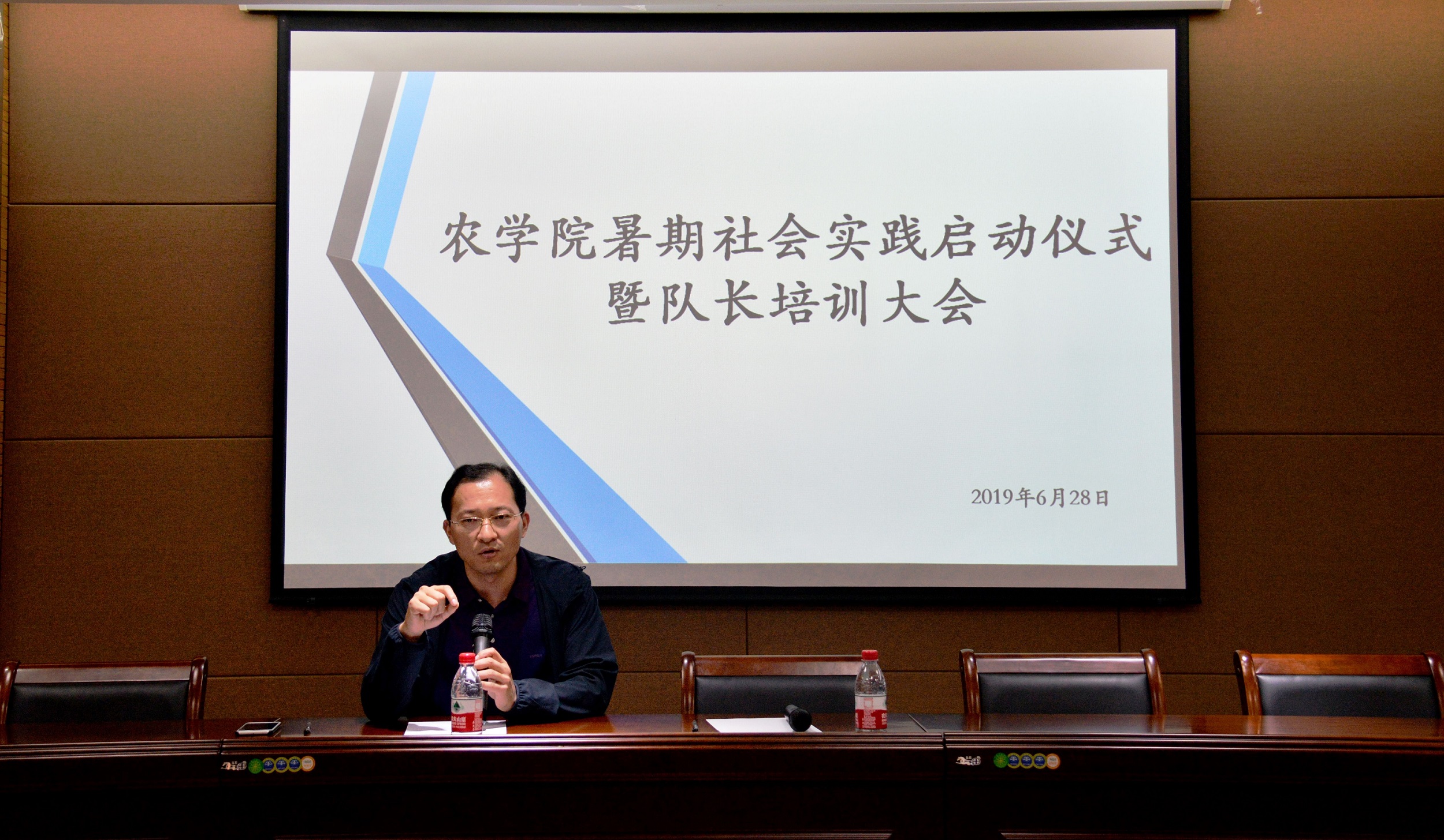 在龙子湖校区实验楼报告厅举行2019年暑期文化科技卫生“三下乡”社会实践活动启动仪式暨队长培训大会。学院团委书记冯晖,辅导员李盼,院团委委员,院传媒工作室成员,2017、2018级暑期社会实践团队代表参加此次大会。