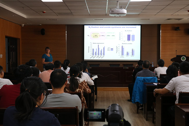 Mechthild Tegeder教授首先介绍了植物体内氮素的重要性,阐述了有机氮以氨基酸或酰脲的形式,从根或叶的产生部位吸收转运到包括种子在内的库器官的调控机制。随后概述了膜转运蛋白在有机氮的细胞内和细胞间转运、源到库器官分配和木质部装载等生理过程中的重要作用。