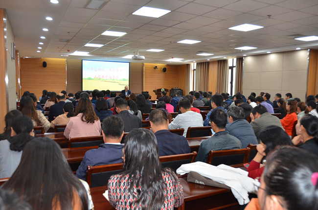 10月15日下午,成人电影 “不忘初心,牢记使命”主题教育报告会在龙子湖校区第一实验大楼南321举行。郭天财教授作了“我是农学人,我为农大做贡献”的报告。校党委书记魏蒙关出席了报告会并同成人电影 在家班子成员、全体教职工和部分研究生一起聆听了报告。报告会由成人电影 院长林同保主持。