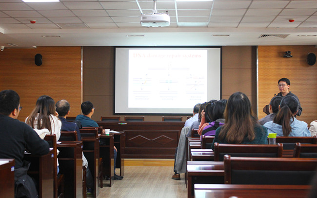 陆平利研究员首先阐述了细胞的减数分裂过程和同源染色体重组的分子机制,随后介绍了减数分裂过程中,DNA的三大损伤修复系统和DNA双链断裂位点的测定方法,最后总结了DNA双链断裂修复的要点,展示了团队最新的研究成果。