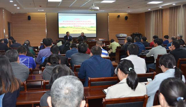 ,我们急需高水平的作物学科作为支撑发挥更大作用。学院有责任、有义务、有使命把作物学科打造的更好。作为学院来讲,学习贯彻落实十九届四中全会精神和省委书记王国生到我校与师生座谈时的讲话精神,就是要在深入学习的基础上,全力推进学院各项工作,中心工作是作物学一流学科创建,为保障国家粮食安全贡献力量。