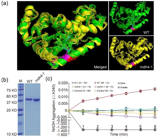 图1 ZmMDH4的构象与催化活性 图2 ZmMdh4调控糖酵解和三羧酸循环的机理