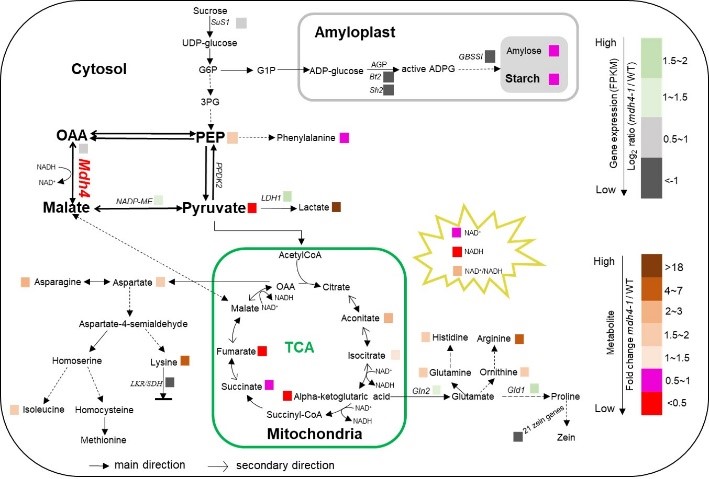 ZmMdh4是导致这一突变的关键基因;结合能量测定和靶向代谢组分析证实