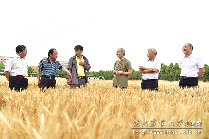 刘旭院士(左四)一行考察我校许昌校区小麦育种试验田