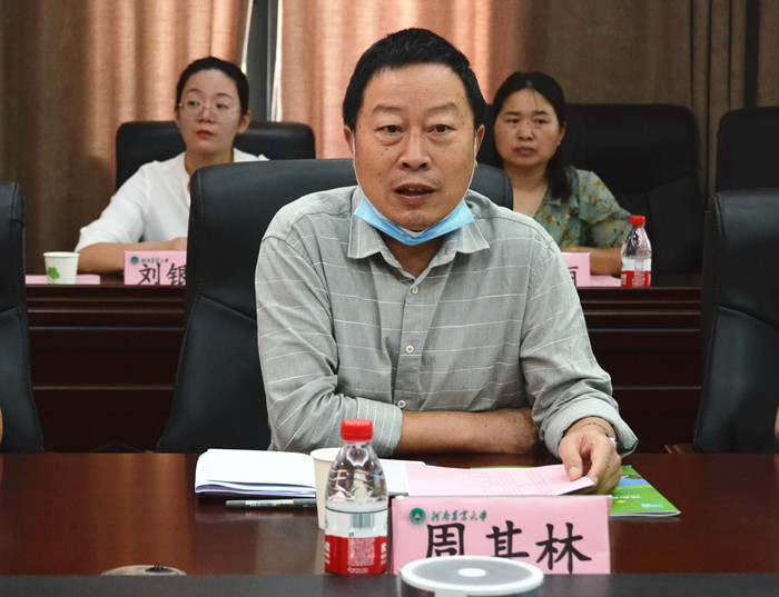 郭战伟代表学院致欢迎词,并介绍了学院的基本情况。周其林书记介绍了湖南农业大学成人电影