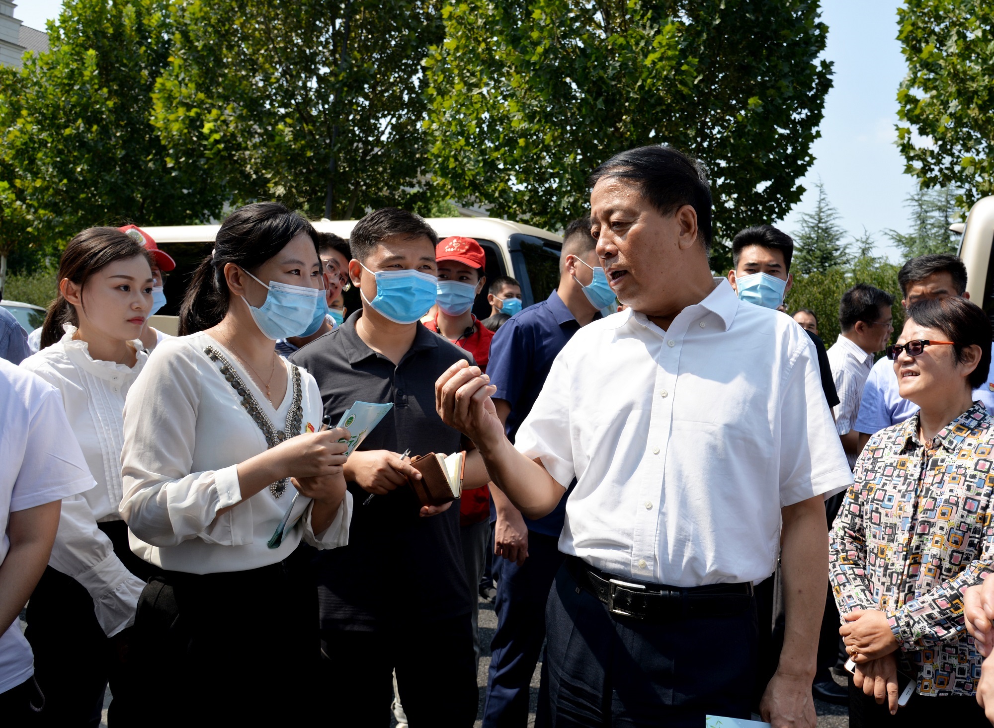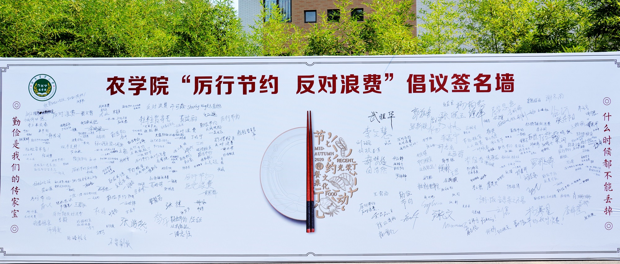 轻风暖阳,秋意盎然。9月12日上午,在龙子湖校区二餐厅西门处附近,学院组织广大青年学子开展“厉行节约 反对浪费”主题系列活动,号召广大师生以实际行动杜绝“舌尖上的浪费”,弘扬中华民族勤俭节约的传统美德。到我校调研的全国人大常委会副委员长武维华、省人大常委会副主任李文慧、省人大常委会农村工作委员会主任张琼以及校党委书记魏蒙关,校长、中国工程院院士张改平,校党委副书记、副校长介晓磊,副校长康相涛等领导深入活动现场,参与相关活动。