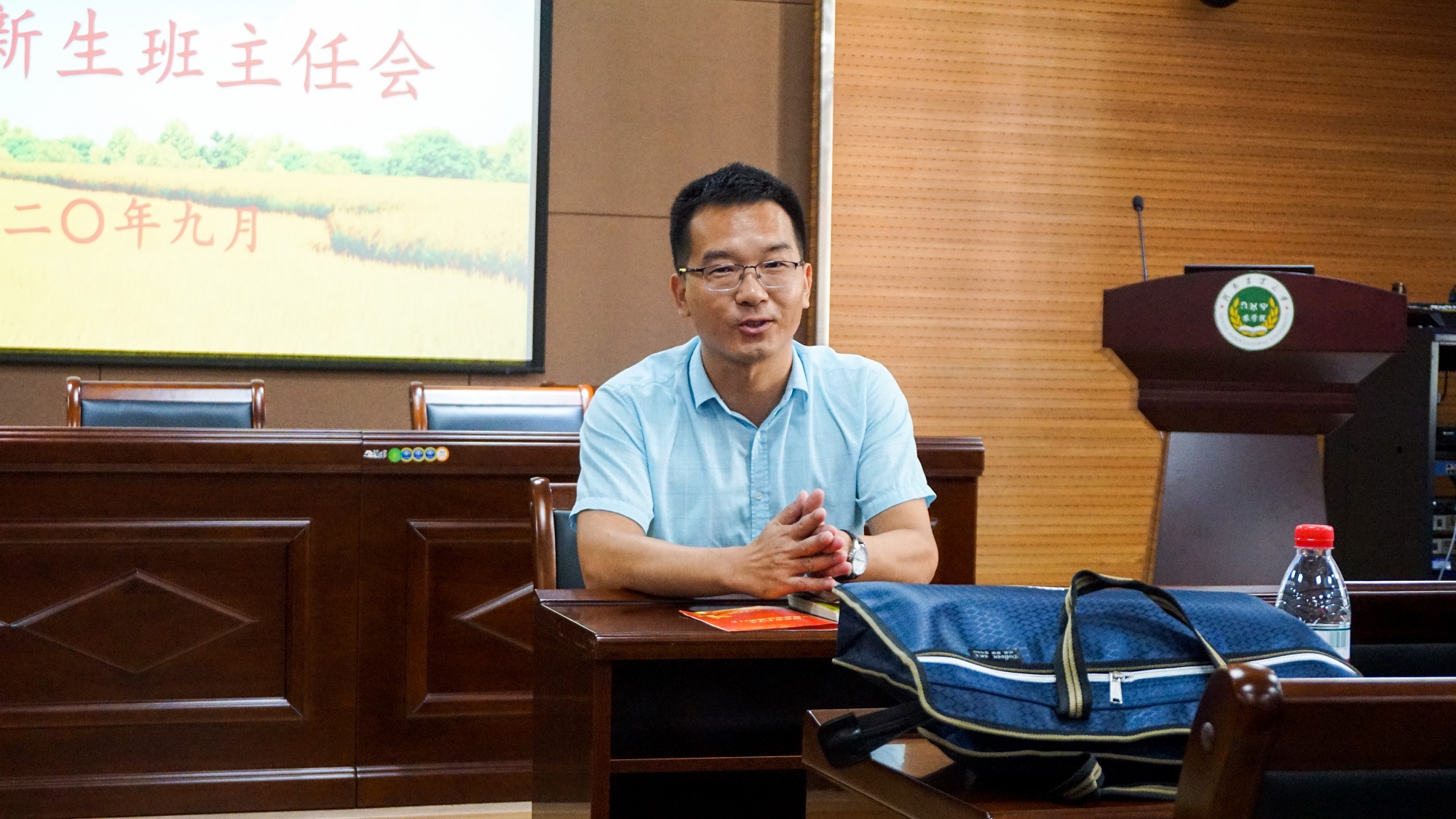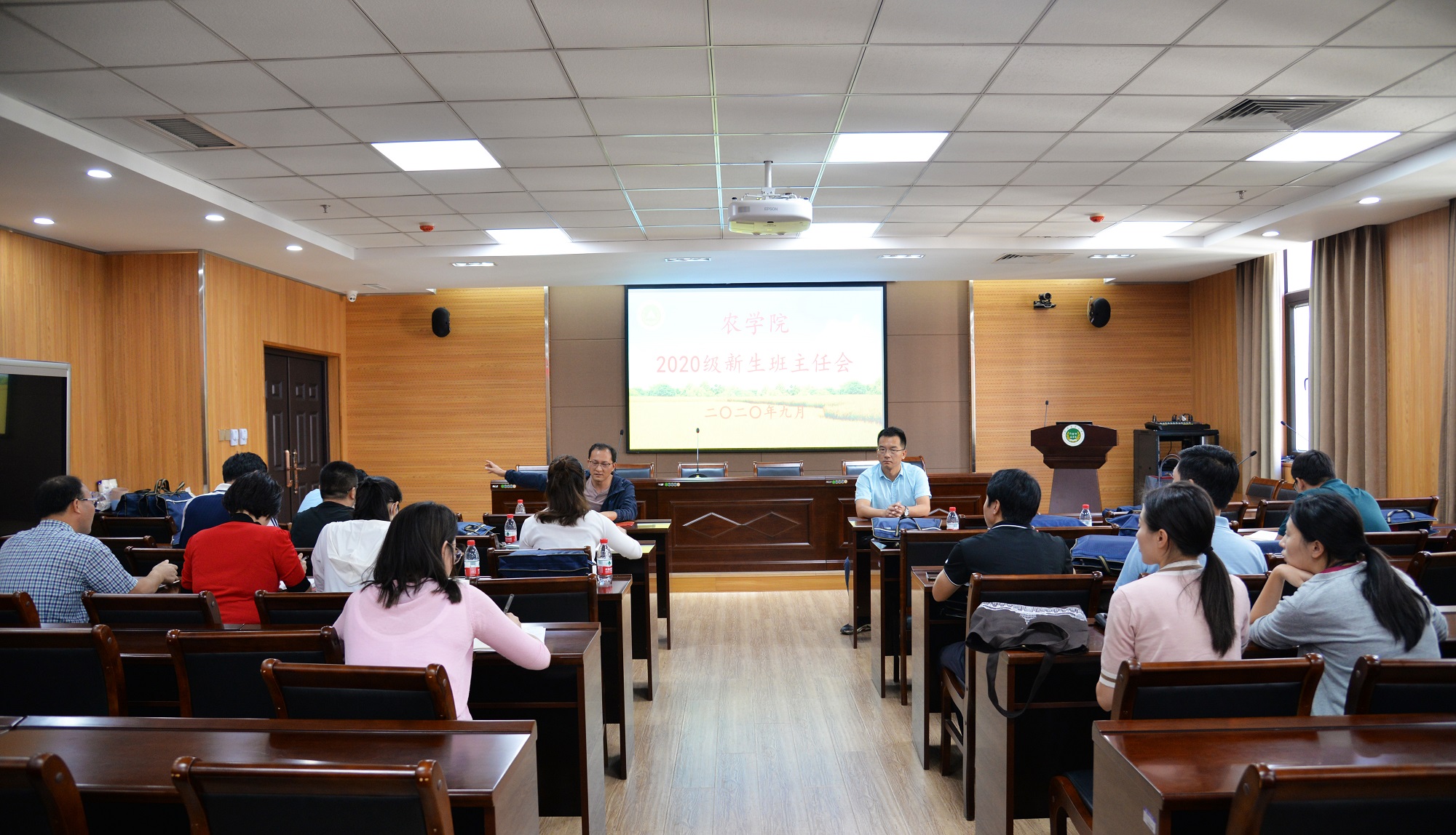 于9月18日下午在龙子湖校区第一实验楼南会议室召开2020级新生班主任会议。院党委副书记王建忠,团委老师以及2020级新生班主任、助理班主任、助理教官参加本次会议。