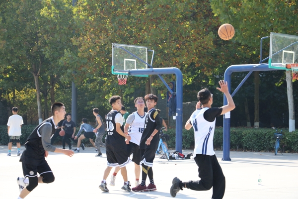 研究生篮球赛在龙子湖校区篮球场拉开帷幕。