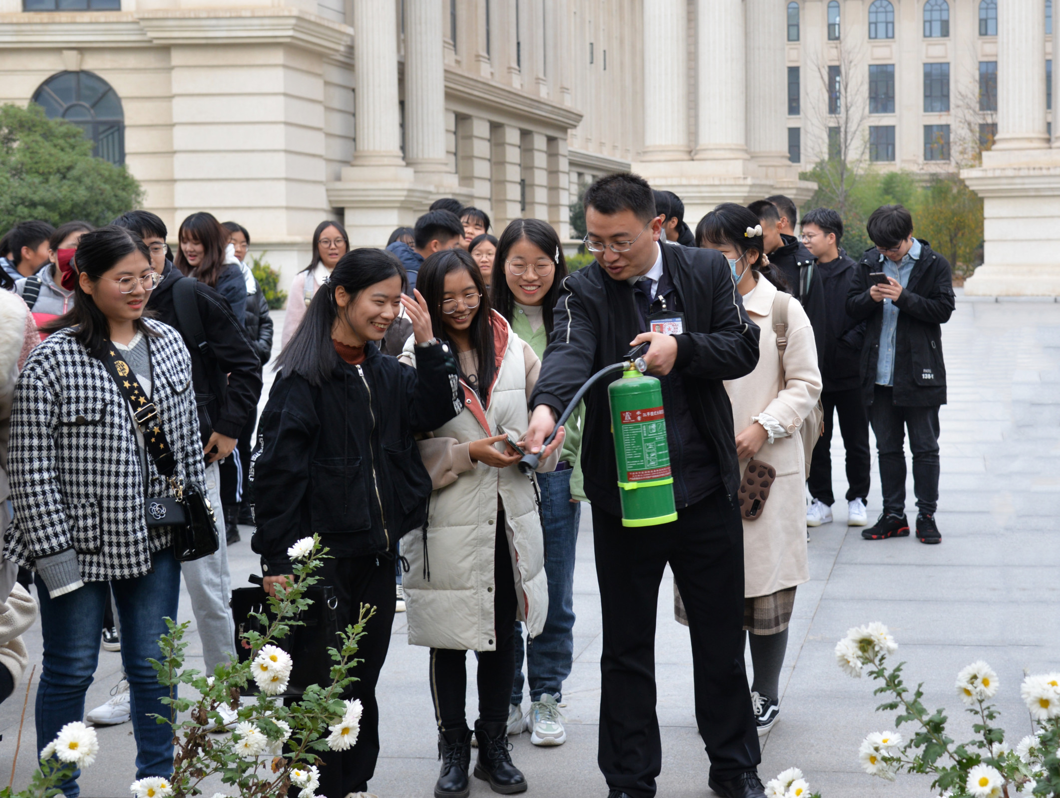 师生进行消防演练