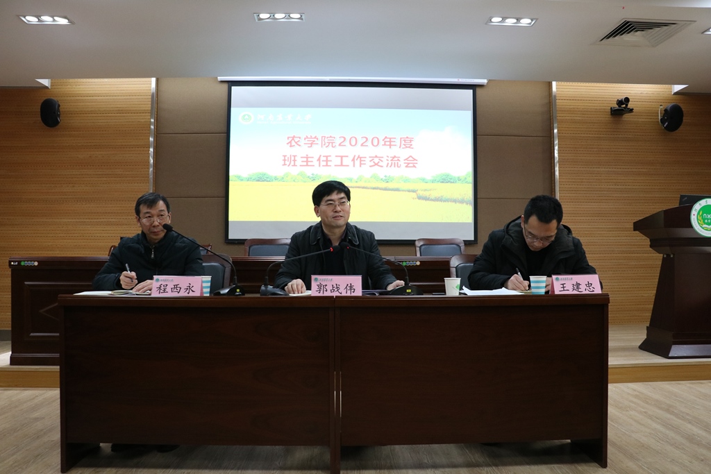 于第一实验楼南321召开2020年度班主任工作交流会。校党委委员、院党委书记郭战伟,院党委副书记王建忠,副院长程西永以及各年级班主任老师参加会议。会议由王建忠主持。