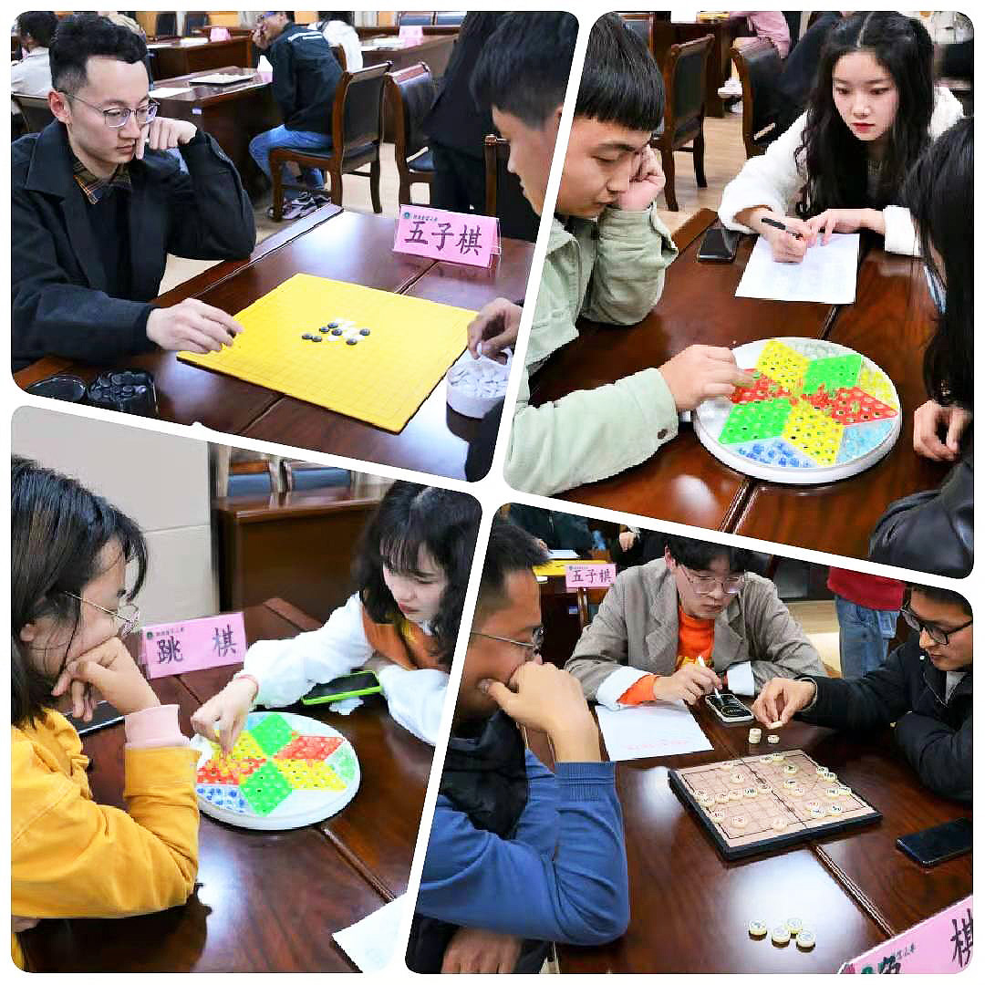 本次比赛分象棋、跳棋和五子棋三个项目。棋盘博弈,智谋比拼,比赛中同学们沉着冷静,落子声此起彼伏,营造出一种“金戈铁马扫千军,羽扇纶巾棋人生”的氛围。每张桌子都成为了“战场”,跳棋选手们精心布局,巧妙搭桥;象棋兵来车往,激烈厮杀而顾全大局;五子棋你堵我截,或雷厉风行,或精雕细琢,甚是精彩。