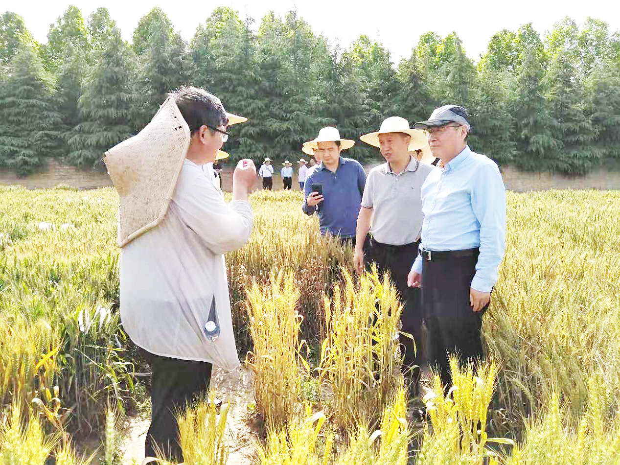 本网讯(通讯员/图片 唐建卫)5月8日,省科技厅党组成员、副厅长夏培臣一行3人顶着烈日,到我校许昌校区殷贵鸿研究员小麦科研团队试验基地,调研小麦高产优质抗赤霉病育种科技创新进展情况。副校长康相涛,科学技术处、许昌校区负责人及相关人员陪同考察。