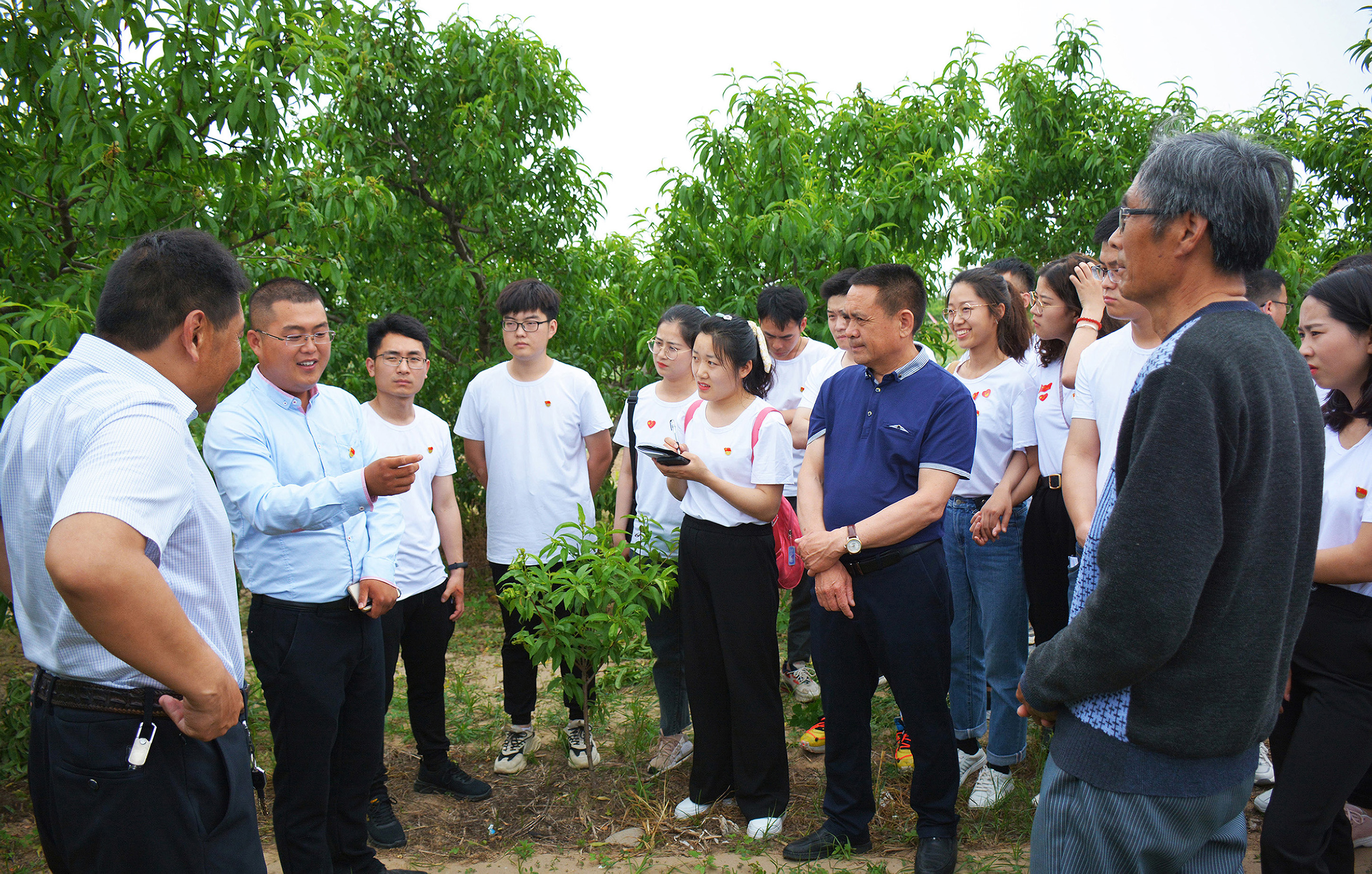 赵乾博士就病虫害防治、树形修剪等方面指导村干部和大桃种植基地工人