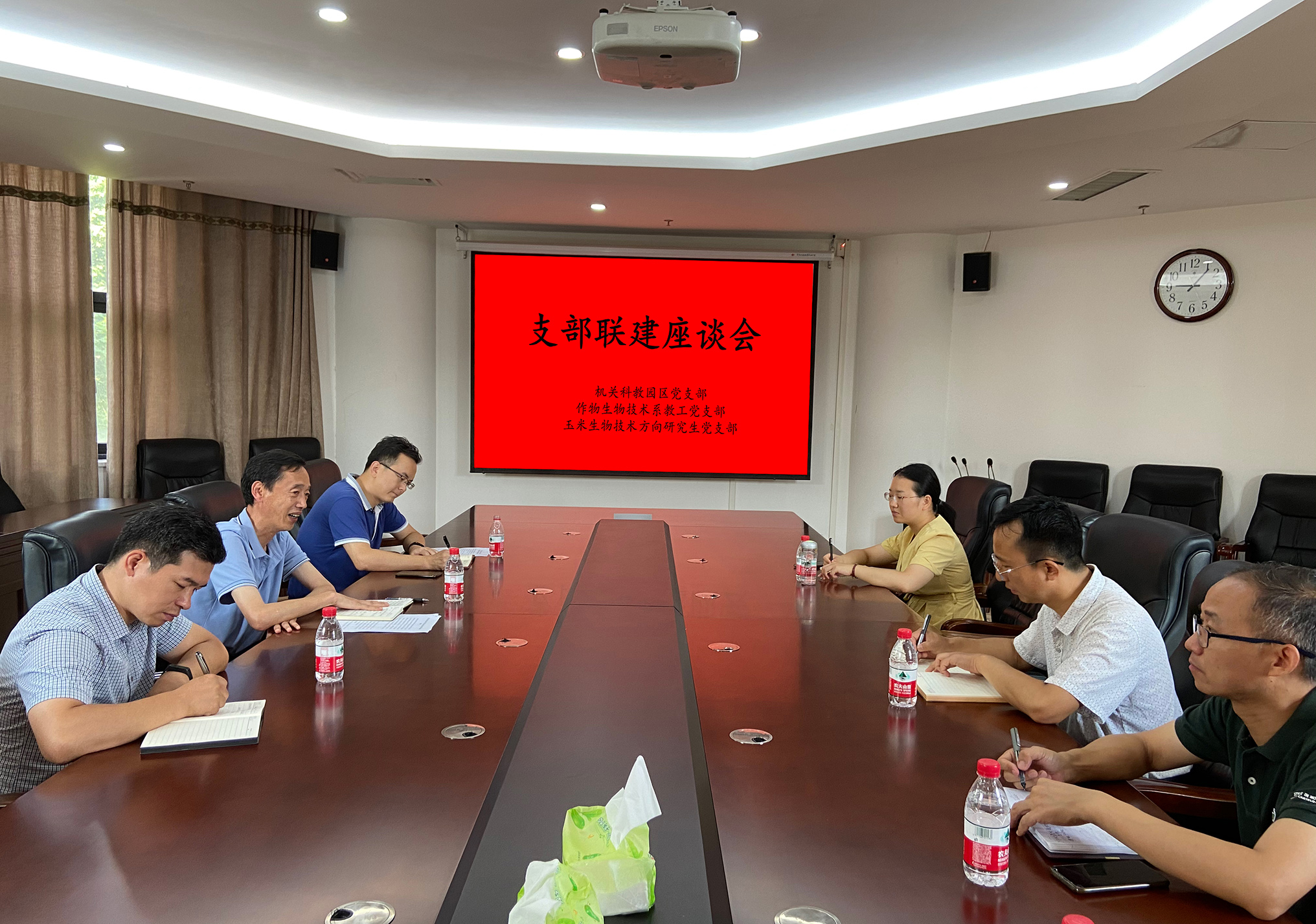 作物生物技术系教工党支部书记李浩川、玉米生物技术研究生党支部书记李广贤以及各支部委员代表参加座谈。