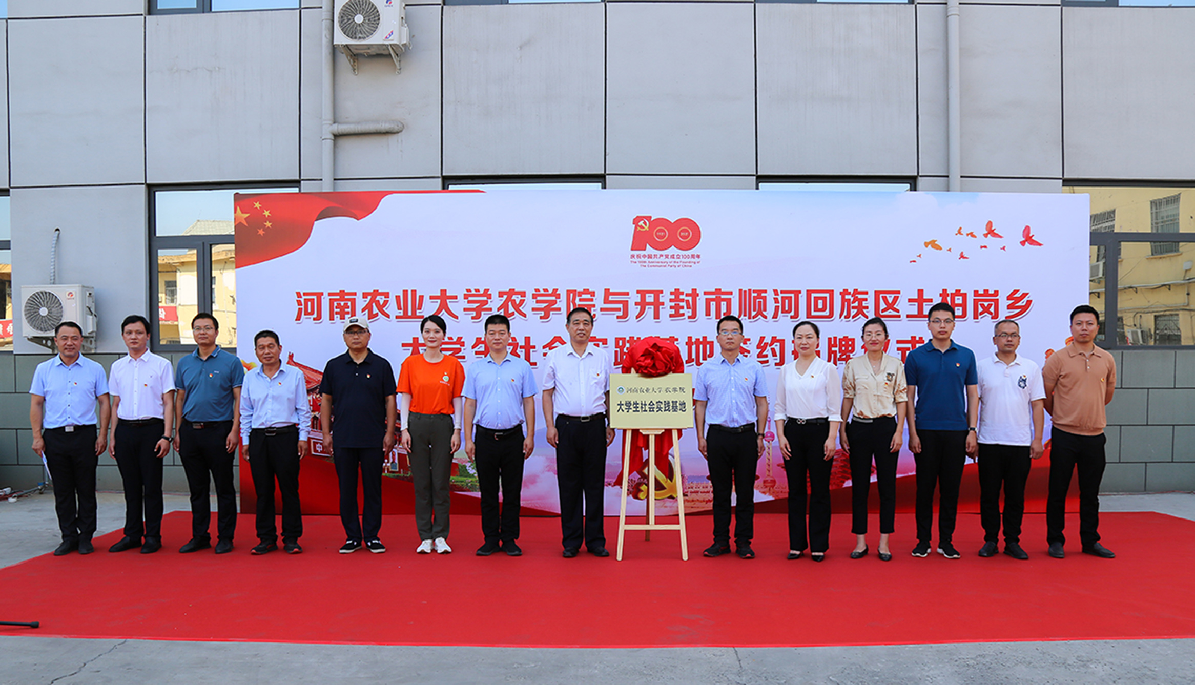 本网讯(通讯员/赵倩男、李俊畅 图片/王营坤)7月9日,成人电影 与开封市顺河回族区土柏岗乡举行大学生社会实践基地签约揭牌仪式。顺河区政协主席付理明,校团委副书记曹永甲出席签约仪式。乡镇负责人、成人电影 相关负责人及师生代表参加活动。仪式由土柏岗乡党委副书记吴颖宾主持。