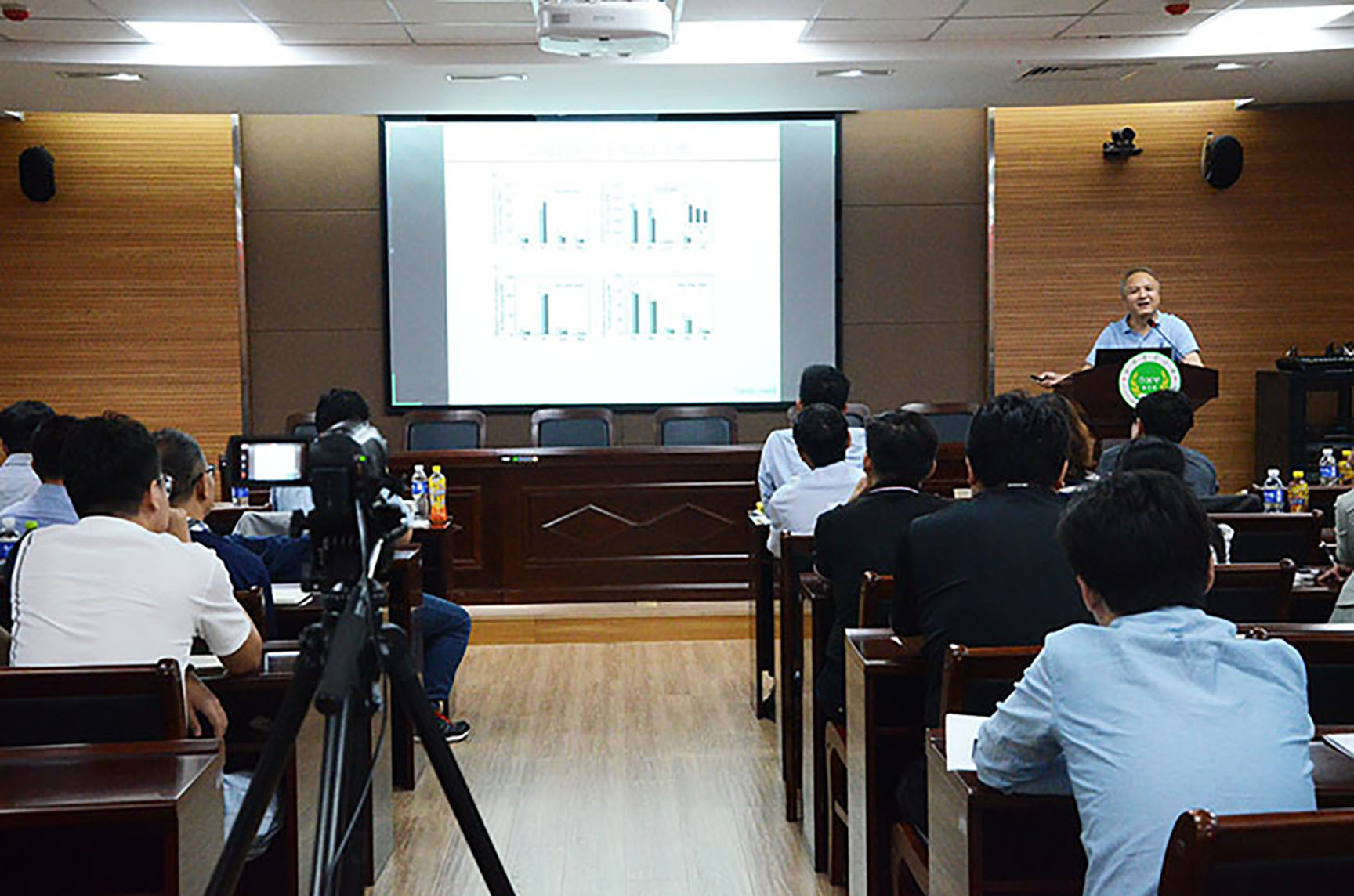 师生作报告。会议由杨建平博士、苟明月博士、王桂凤博士和吴刘记博士主持,院长王道文致欢迎词。