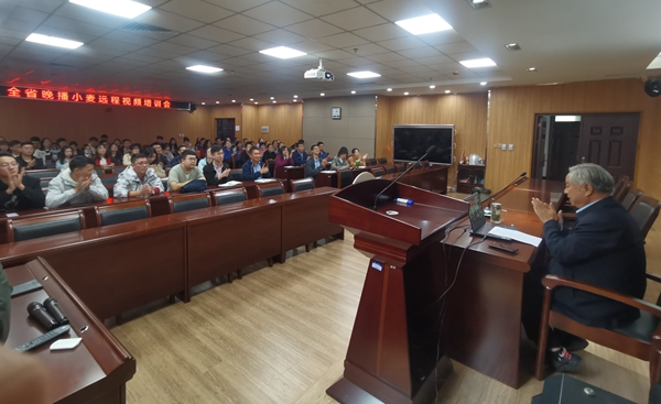 郭天财教授以远程视频方式对全省农业技术推广人员进行了应对小麦晚播的应变栽培技术培训,重点分析了当前我省小麦播种存在的各种困难问题,提出了应因地制宜,分类施策,制定不同类型麦田播种技术对策和全省小麦晚播条件下高质量种足种好小麦应特别注意的几个问题。成人电影