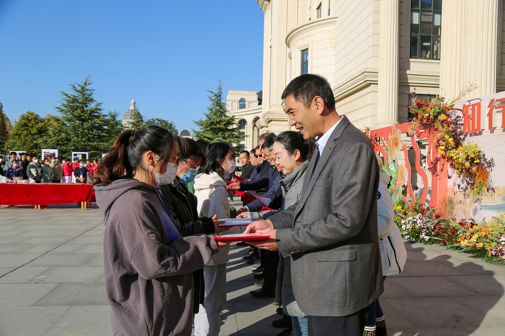 领导为菊花节获奖同学颁奖