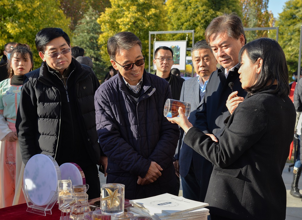 中药系老师为现场领导讲解展品