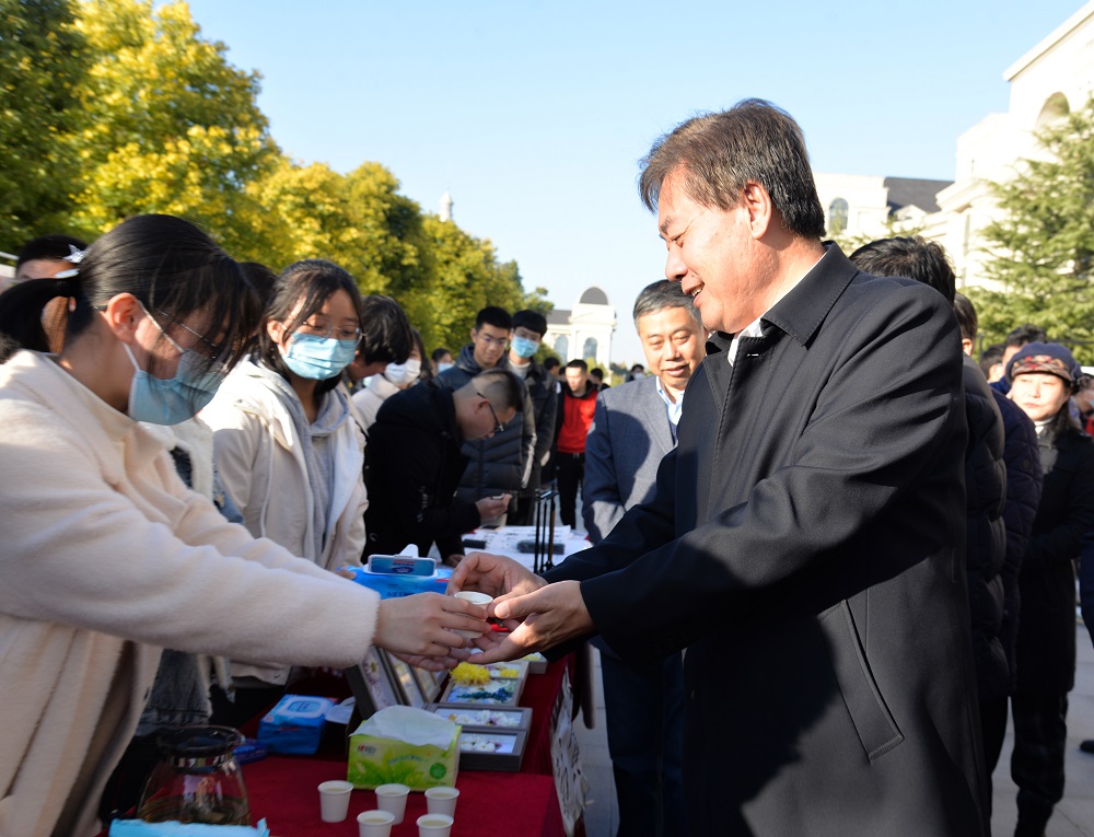 于龙子湖校区繁塔楼西侧广场举办了以“知行本草 风华菊香”为主题的第三届菊花文化节。校党委副书记、工会主席李成吾,党委学工部、党委研工部、教务处、社会服务处、校团委等各职能部门相关负责人、成人电影