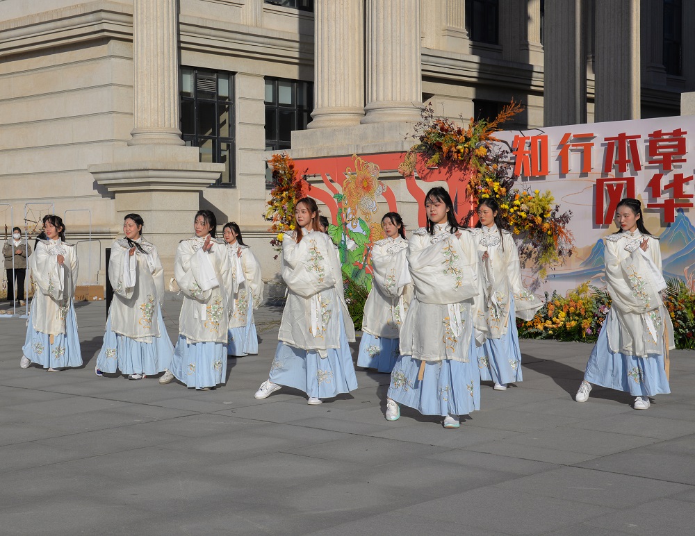 身穿汉服的同学表演菊花节目