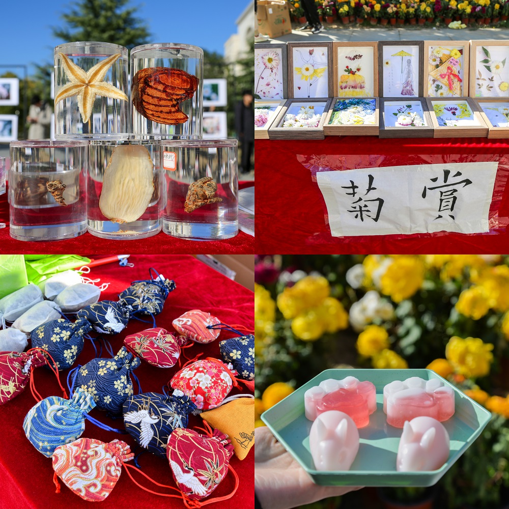 青禾艺术团的古典舞表演和颂菊情景剧中拉开帷幕。充满古风韵味的汉服舞蹈、悠扬的古乐与菊花交相辉映,相得益彰,在阵阵菊香中,以情景剧形式表演的颂菊节目带师生们回顾了历史中菊花的千载风华。此次活动包括颂菊、讲菊、赏菊、写菊、品菊、唱菊等多个环节。师生们以“菊”为媒,结合学科和专业特点,围绕“菊文化”开展各具特色的雅集活动。中药材系师生向大家讲解了有关菊花的种植历史、使用途径等,并以菊花为代表,介绍了常见中草药的药用食用价值、临床配方等中医药知识。学院师生将自制的菊花冻、菊花茶、菊花粥等药膳美食,向现场师生交出了“课堂作业”;菊花主题摄影作品、书画以及各类中药材标本等引来不少师生驻足围观;围绕菊花设置的猜灯谜小游戏、书法创作、中药工艺品DIY等环节,吸引过往师生纷纷驻足参与进来。用VR虚拟现实技术让在场师生身临其境体验采挖中草药,成为本次菊花节的一大亮点。此次菊花文化节在以往基础上创新,将传统文化艺术与现代生活方式相融合,传播中国传统文化的精髓与乐趣,形成独特的关于新中式文化的解读。针对“琴、棋、书、画、诗、酒、花、茶”八雅文化进行演绎,或以花入馔、或咏花以歌……这些既是古人用心生活的态度和方式,也是当代青年热爱的生活美学。