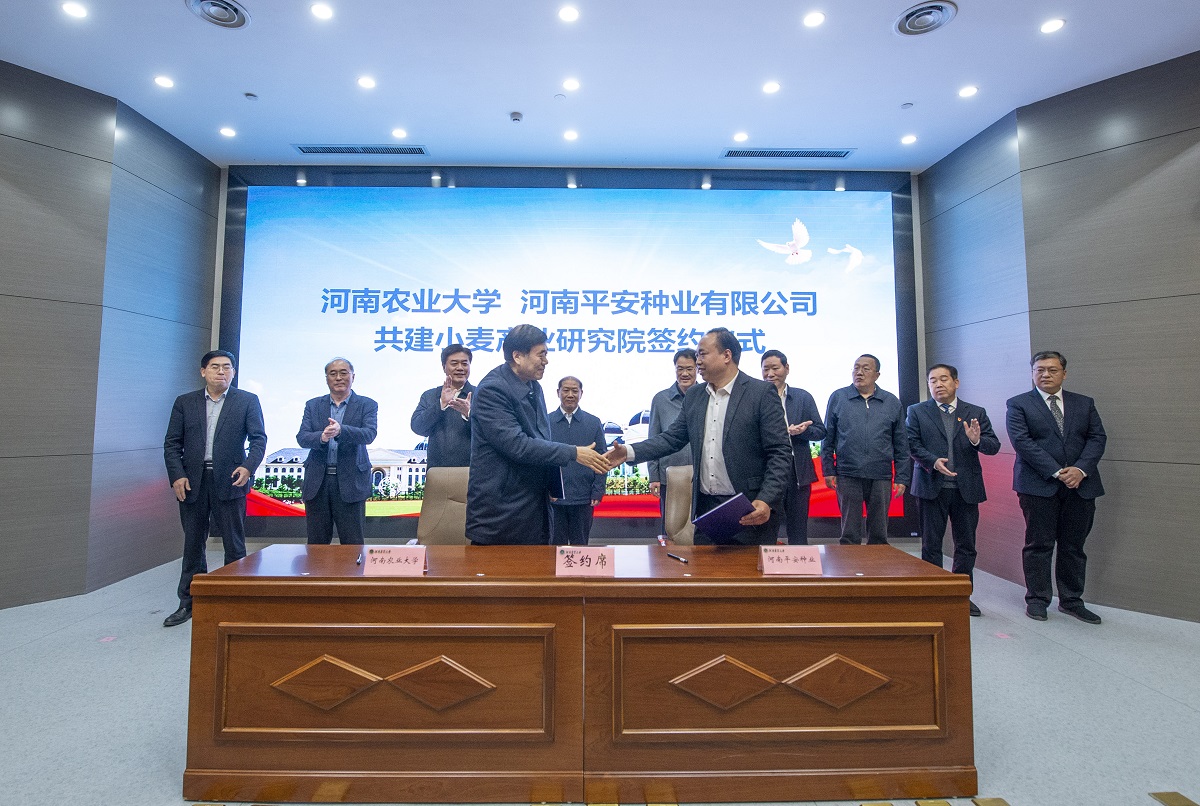 、河南平安种业有限公司现场签署共建小麦产业研究院合作协议。双方将围绕项目联合申报、新品种选育、新技术示范推广、人才培养、技术培训与指导等方面开展深度合作,进一步集成创新要素、深化合作内容、创新合作模式,实现校企双赢,助力乡村振兴。