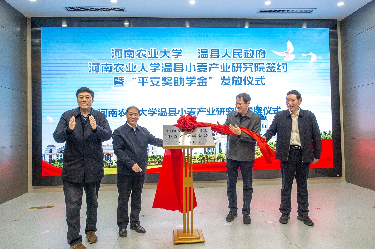 温县小麦产业研究院签约暨“平安奖助学金”发放仪式在龙子湖校区综合楼120报告厅顺利举行。