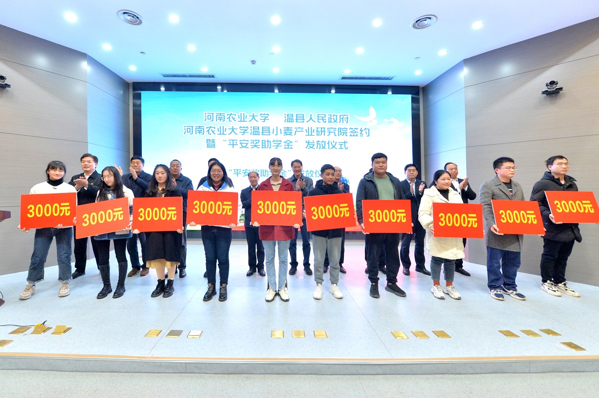 介晓磊讲话。他指出,河南平安种业有限公司在我校设立“平安奖助学金”充分体现了平安种业作为农业领域的优秀企业代表的社会责任担当与“三农”情怀。他表示,学校将用好“平安奖助学金”,提高人才培养质量,为社会培养更多优秀的农业科技人才。他勉励获奖的同学们,要立足新时代,把对远大理想的向往与追求转化为实际行动,把握机遇、勤奋学习,努力做有知识、有涵养、有品德、有魅力、有抱负、有能力的时代青年。